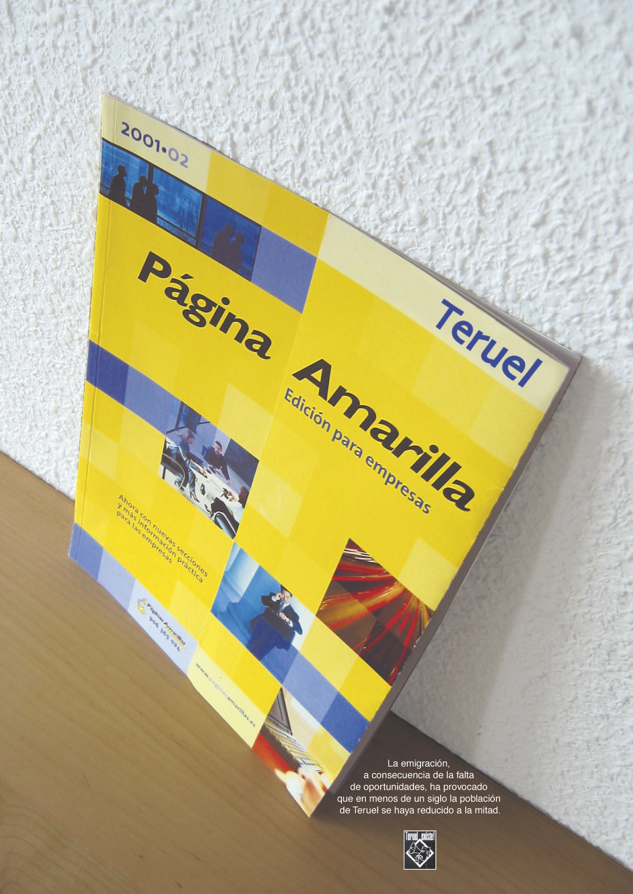 Páginas amarillas | 2002 Categoría: Jóvenes Creativos | Estudiantes | Estudiantes Formato: Impreso Créditos (Si quieres acceder a esta información y a la búsqueda directa por profesionales, marcas y empresas, identifícate o date de alta como usuario premium aquí.) Estudiante | Student: Escuela | School: Piezas relacionadas Terra + gente | 2002 Universidad Nebrija Jóvenes Creativos | Estudiantes Hospital de Valencia | 2002 The School Agency Jóvenes Creativos | Estudiantes Depuradora | 2002 The School Agency Jóvenes Creativos | Estudiantes