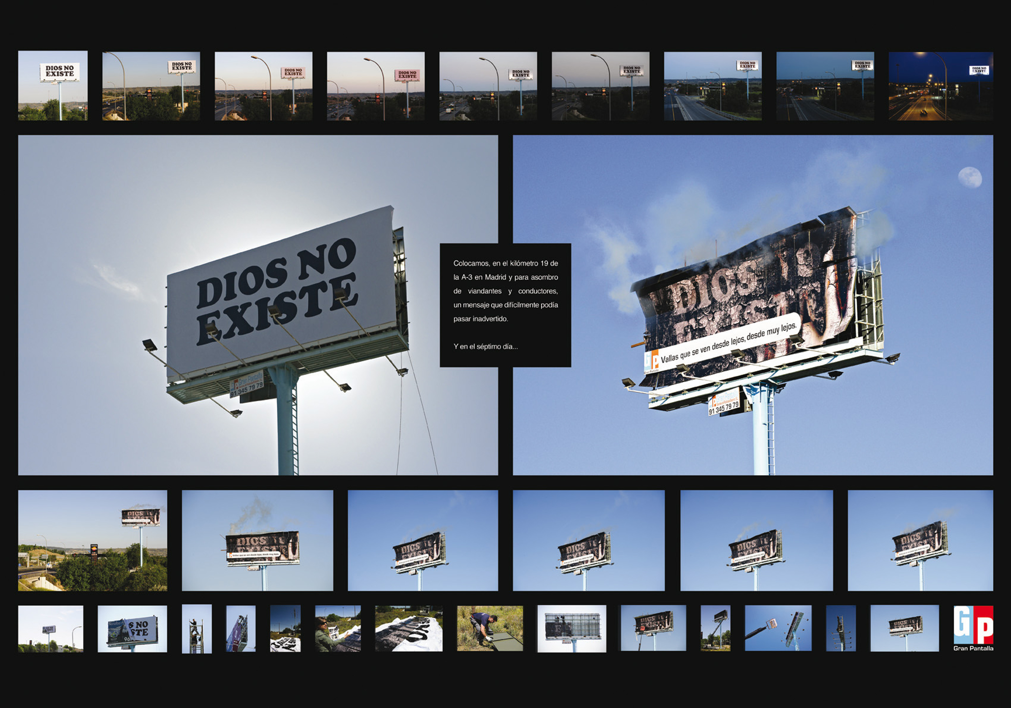 Dios no existe | 2010 Categoría: Gráfica | Exterior | Otros soportes exterior Formato: Impreso Créditos (Si quieres acceder a esta información y a la búsqueda directa por profesionales, marcas y empresas, identifícate o date de alta como usuario premium aquí.) Agencia | Agency: Redacción | Copywriting: Dirección de arte | Art direction: Dirección creativa ejecutiva | Executive creative direction: Dirección general creativa | Creative general direction: Cuentas | Account team: Producción (agencia) | Production (agency): Aprobado por | Approved by: Marca | Brand: Anunciante | Client: Piezas relacionadas Feliz Navidad. Feliz Vanidad | 2010 D6 D6 Autopromoción | Autopromoción