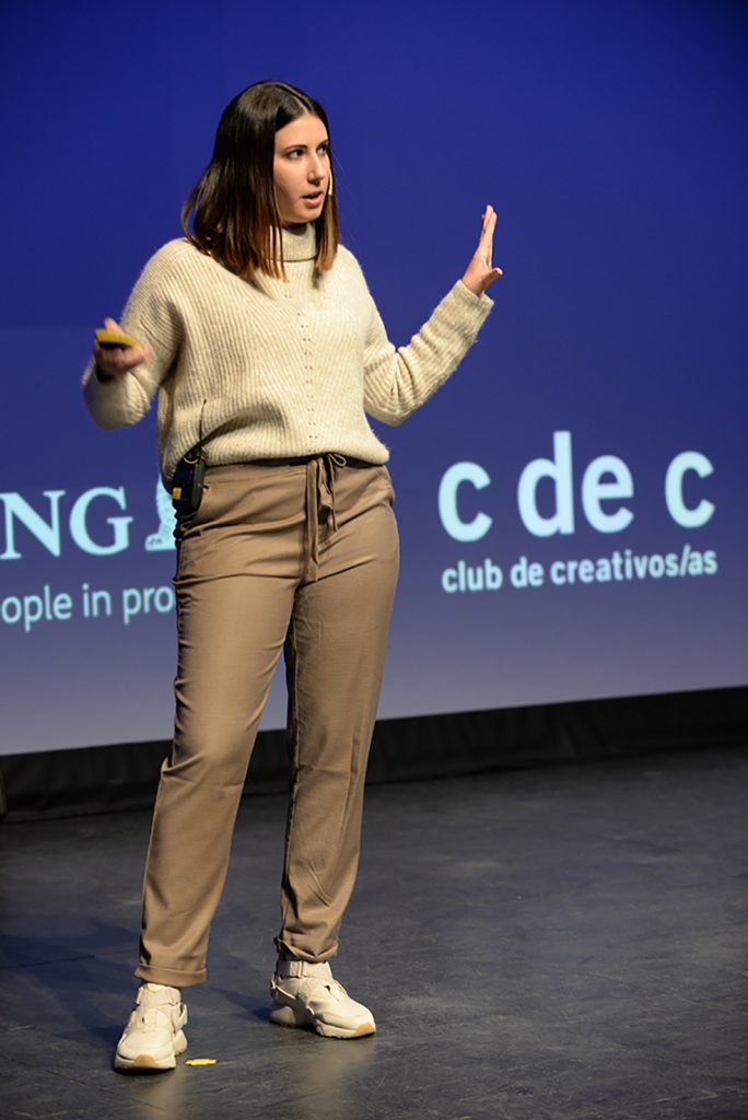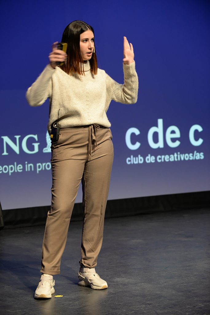 Diseñando una voz. Fue el título de la ponencia de Ana Lahera. “En principio, en la agencia en la que trabajo soy solo una voz detrás de una pantalla. Mi estatura no me permite ser visible. Hoy la voz es tendencia a nivel mundial. Pero yo creo que no es simplemente una moda. Es la forma de comunicación más primitiva que tenemos. La voz debería ser lo que hace únicas a las marcas. Pero ¿por dónde empezamos a construir una voz? Una voz son unos valores, una forma de pensar concreta, es una personalidad. En un futuro puede que deje de ser una voz detrás de una pantalla para ser la que diseñe la voz de vuestras marcas”.