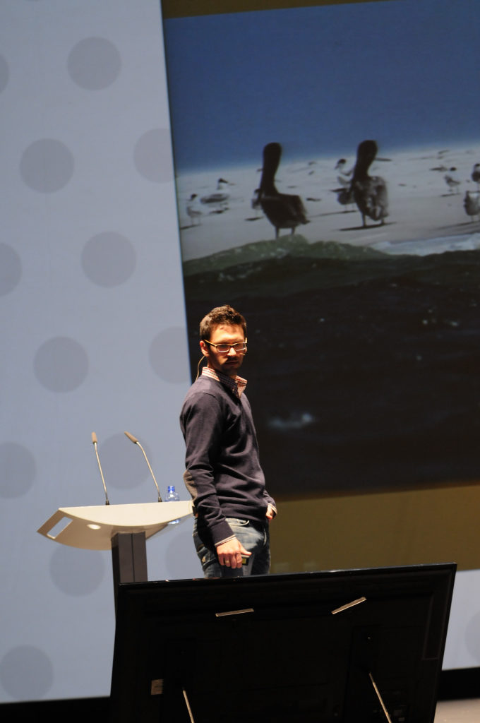 En la primera ponencia del viernes 12 se pudo escuchar a Nicolas Roope, el multipremiado diseñador británico y cofundador de Poke London y creador del colectivo artístico Antirom., quien defiende la creación de productos para comunicar. Santiago Cirugeda, quién se define como un arquitecto social, habló sobre cómo aprovecha los vacíos legales y los recursos para beneficio de la comunidad. Bajo el nombre artístico de “Querido Antonio”, Alberto González Vázquez, guionista, ilustrador y realizador, realiza cortos, animaciones y viñetas en las que expresa su particular visión del mundo que vivimos.