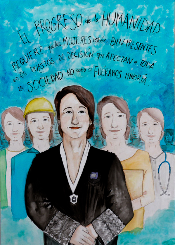 Adela Asua, hasta el pasado marzo magistrada y vicepresidenta del Tribunal Constitucional y actualmente catedrática de Derecho Penal en la Universidad del País Vasco, recordó que aunque su vocación era la de estudiar Medicina, como por aquél entonces no había Facultad de esta carrera en Bilbao, donde ella residía, tuvo que decantarse por el mundo del Derecho. “Ante el abismo de quedarme parada, elegí lo primero que tenía a mano y estudié Derecho a regañadientes”, comentó. Porque, en aquella época, si alguien tenía que estudiar fuera en una familia numerosa como la suya eran los chicos. Recordó también que cuando empezó a trabajar en un despacho, si algún día faltaba la secretaria, se daba por hecho que cuando llegara una visita era ella la que tenía que abrir… “Tengo la convicción de que aunque muchas veces nos autolimitamos por razones familiares, a veces, paso a paso y llevando la mochila con equilibrio, se consiguen cosas”, dijo. “Aún así”, añadió, “la visibilidad sigue siendo todavía hoy un problema: no se nos ve cuando estamos y tampoco cuando hay que elegir cargos de responsabilidad, algo que en mi profesión queda reflejado en el hecho de que aunque haya un 60% de mujeres jueces, solo sean un 12% en el Tribunal Supremo”.