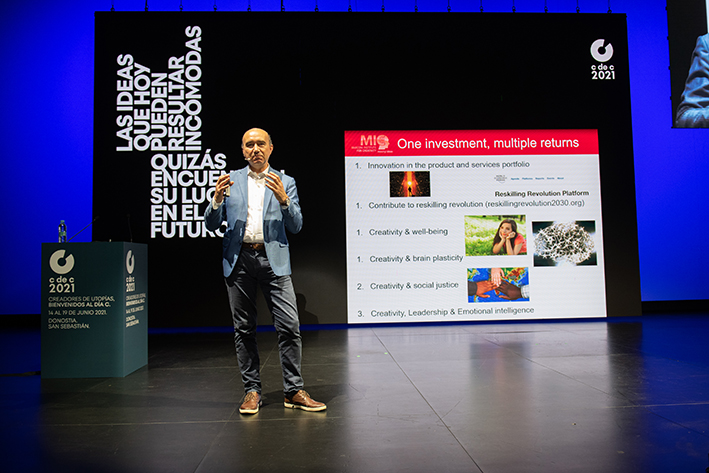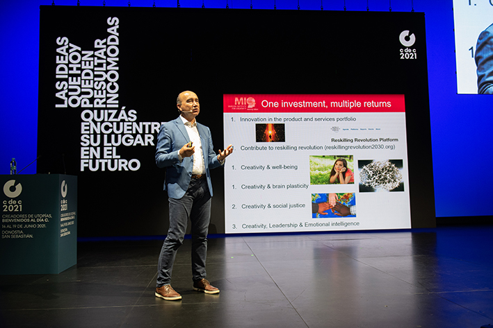 Y hablando del futuro hizo también referencia a como viviremos en él, a cómo será nuestra relación con las máquinas. “En el futuro, nuestra aportación será la creatividad. A medida que pase el tiempo tendremos que ser más emprendedores. Nos convertiremos en emprendedores en serie. No habrá elección. Las maquinas harán todo tipo de tareas y los humanos trabajaremos siendo creativos. Por eso, la creatividad no es un lujo, es una necesidad para nuestra supervivencia”.