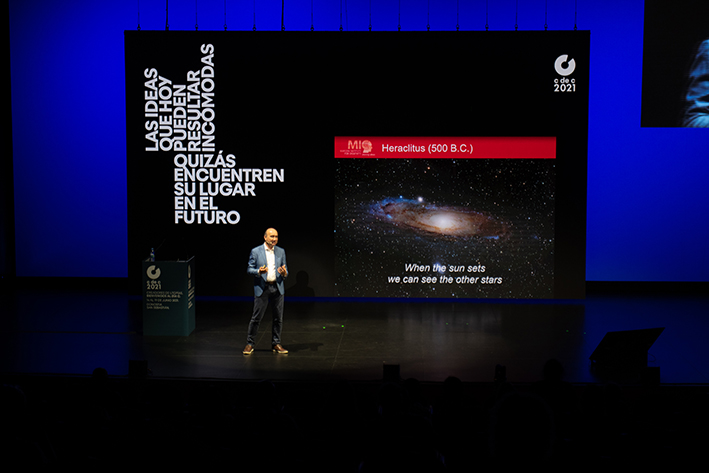 Inició su intervención en el Día C 2021 hablando de lo que nos diferencia de las máquinas. “Somos humanos por la inteligencia, por la importancia del esfuerzo para aprender. Podemos llegar al conocimiento con el reconocimiento de patrones, sin perder el tiempo con detalles innecesarios. Interpretamos todo sobre la base de conocimientos previos. Somos muy eficientes en ello”.