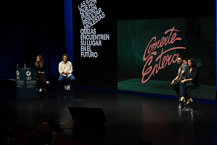 Little Spain, el proyecto artístico-cinematográfico surgido en Los Ángeles de la mano del director Santos Bacana, del cantante Antón Álvarez (más conocido como C. Tangana) y las productoras María Rubio y Cristina Trenas, puso el broche final al ciclo de ponencias del Día C 2021 con una exposición en la que los cuatro impulsores de este grupo explicaron cómo se conocieron, en qué consiste su trabajo y cuáles son sus proyectos más inmediatos.