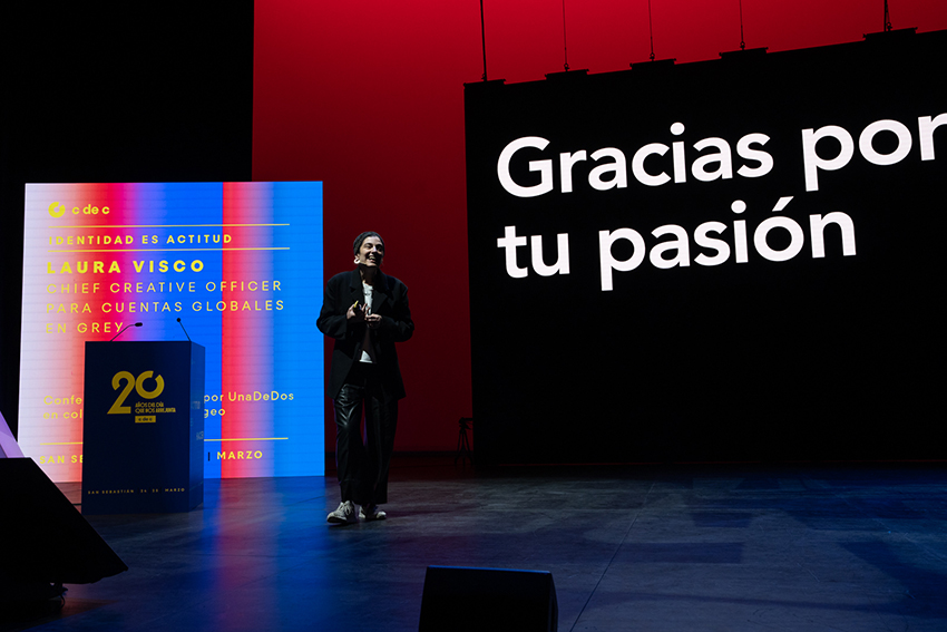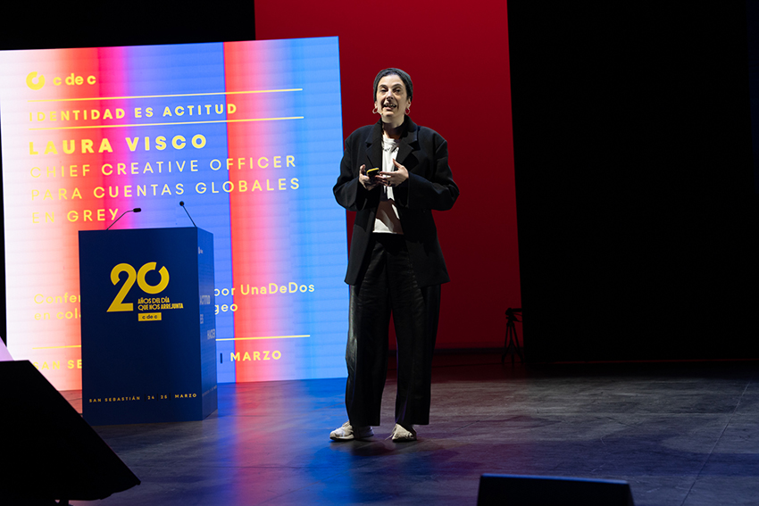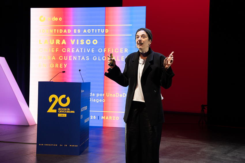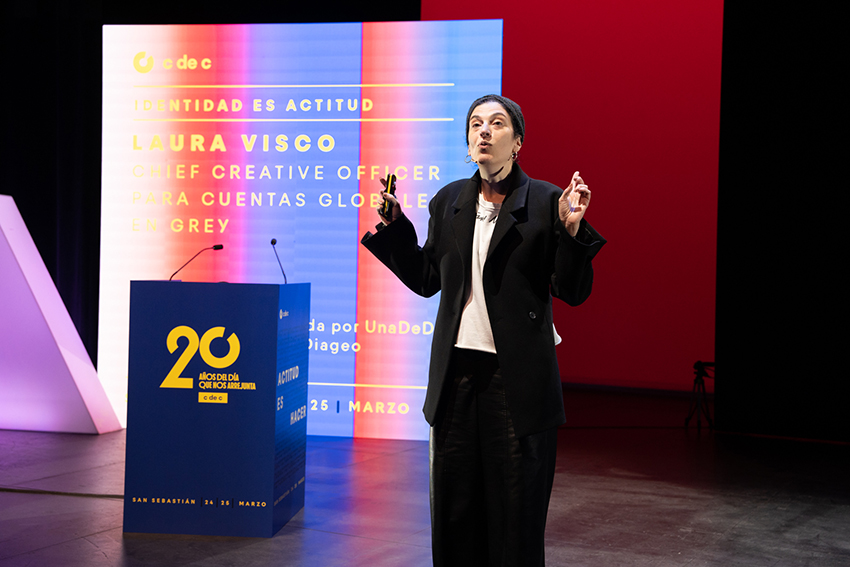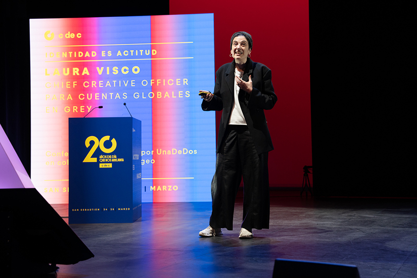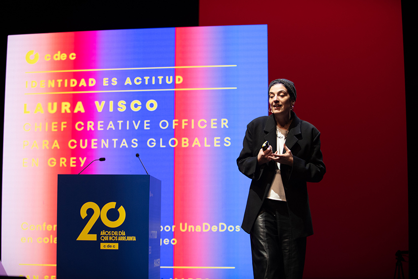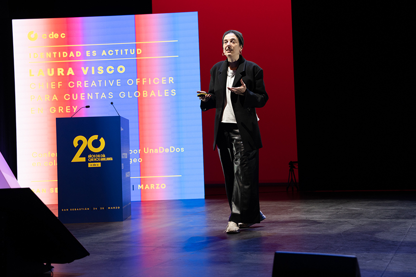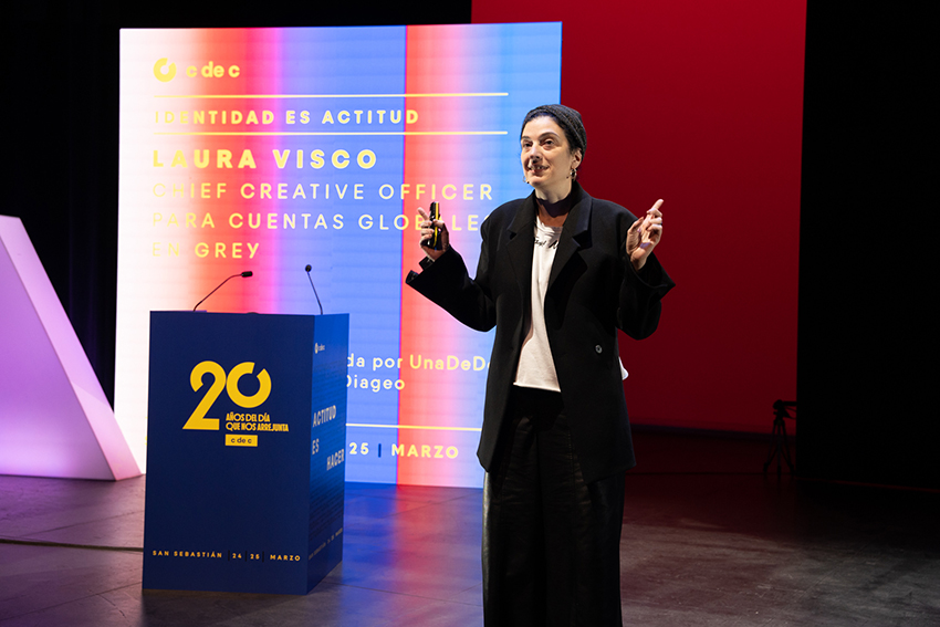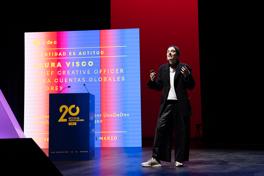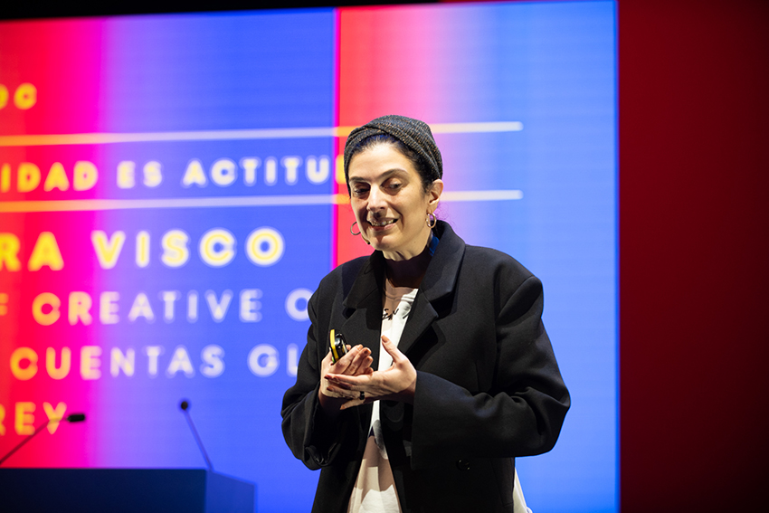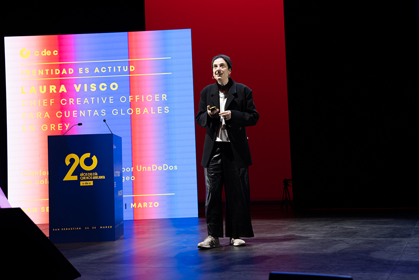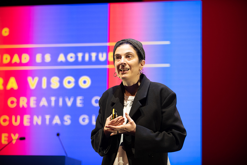 Laura Visco, chief creative officer para cuentas globales en Grey (Londres), fue otra de las invitadas al Día C 2023, en esta ocasión por parte del proyecto UnaDeDos, que busca impulsar el liderazgo de las creativas. Con su ponencia titulada ‘Gracias por tu pasión’, una frase que la creativa argentina ha tenido que escuchar muchas veces en su etapa en el mundo anglosajón no como algo positivo sino más bien condescendiente, quiso demostrar que defender tu identidad es también actitud.
