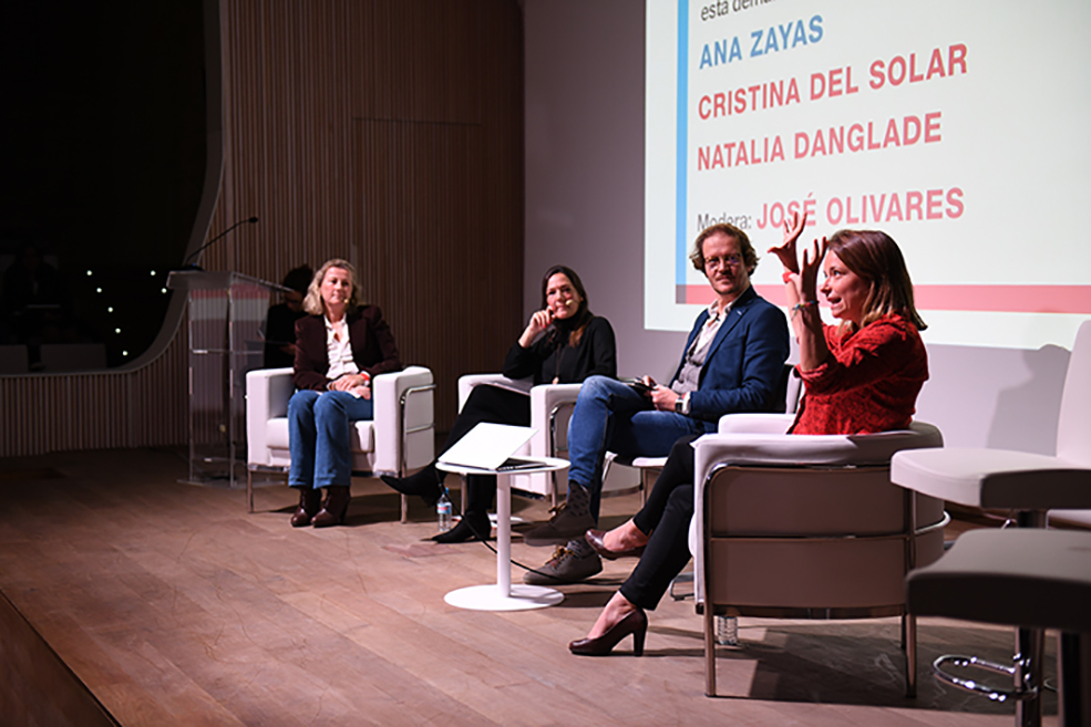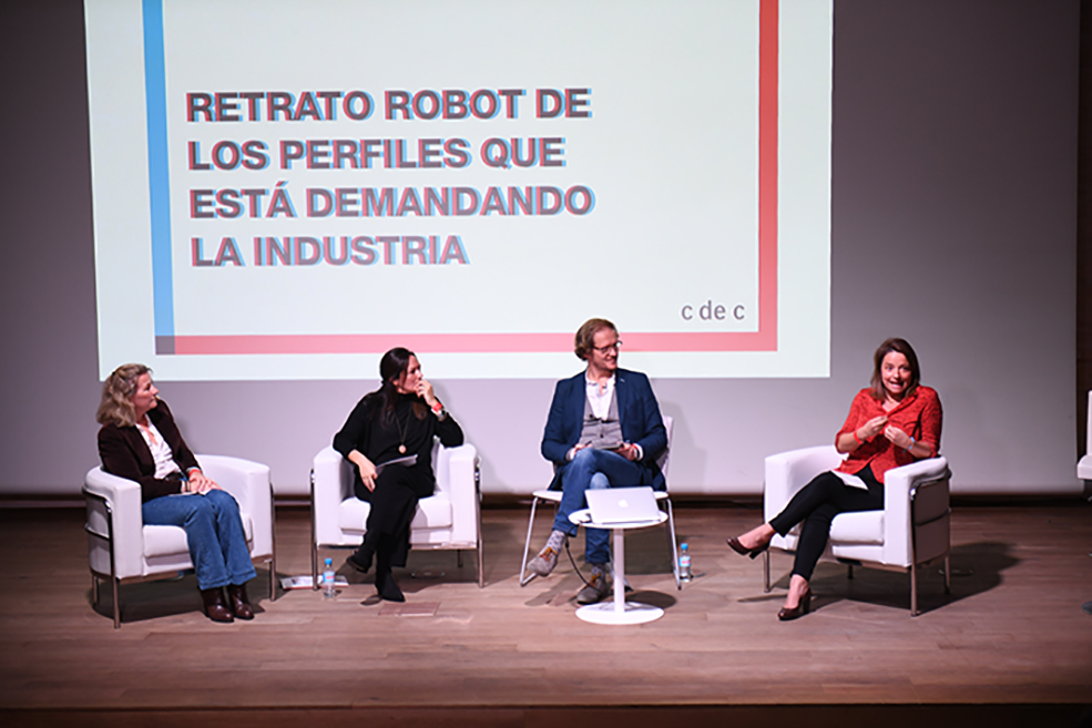 Ana Zayas (Michael Page), Cristina del Solar (BPM) y Natalia Danglade (BPM) participaron, en el Día E, en una mesa redonda orientada a dibujar el retrato robot de los perfiles de creatividad y marketing que actualmente demanda la industria. José Olivares (Universidad de Nebrija y Universidad Complutense) fue el encargado de moderar el coloquio.