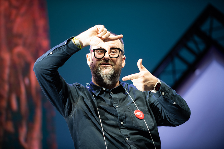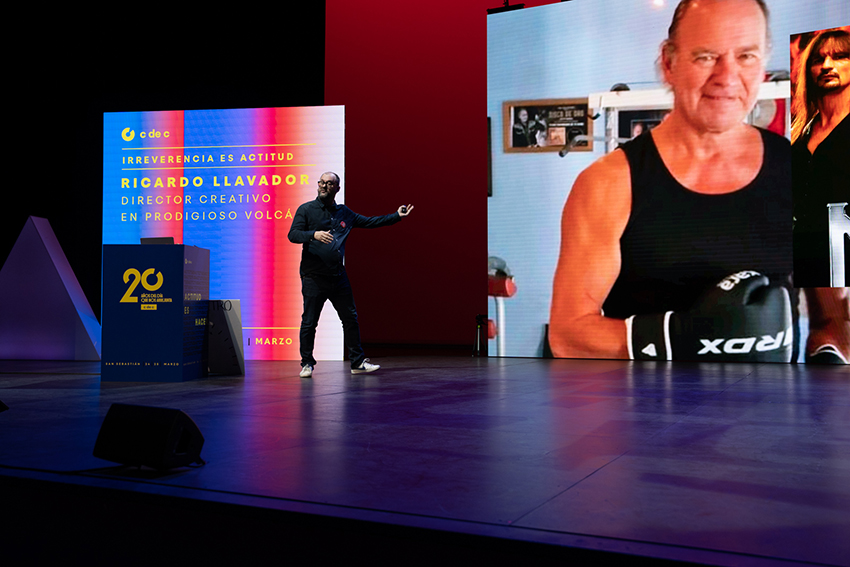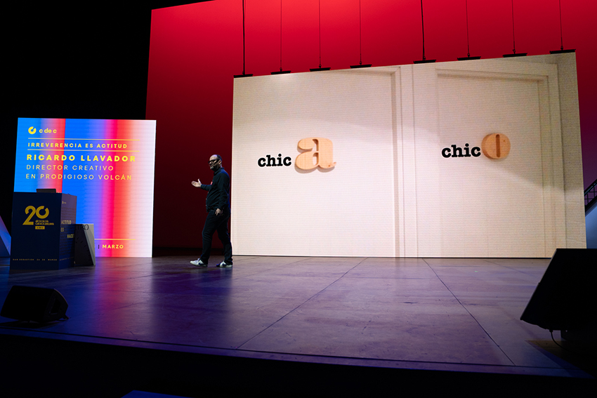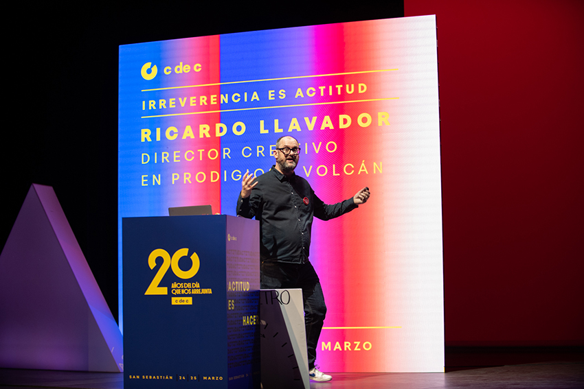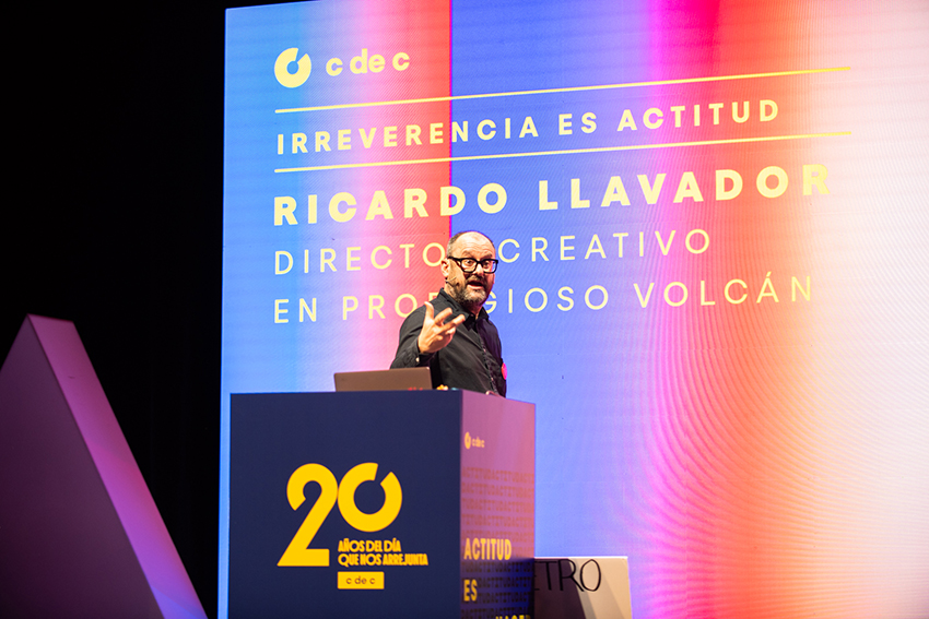 Un año más Ricardo Llavador, director creativo en Prodigioso Volcán, volvió a poner la nota de humor al Día C. Esta vez con una ponencia en la que deleitó al auditorio con las 6 actitudes que, a su juicio, debe tener todo publicitario para triunfar en su carrera: pereza, visión, exceso, criterio, morro y dejar colgada a la planner, acompañadas, como siempre, de imágenes de campañas fallidas y comentarios jocosos.